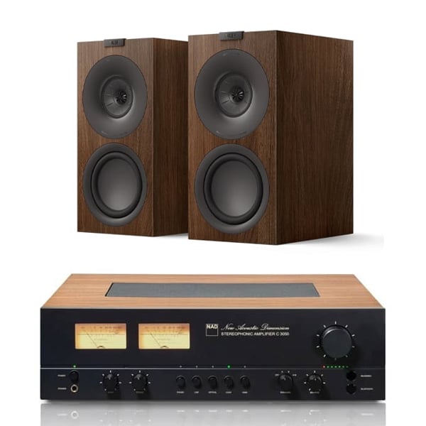 KEF Q Concerto Meta Bookshelf Speakers (Walnut) & NAD C3050BS Streaming Amplifier Bundle