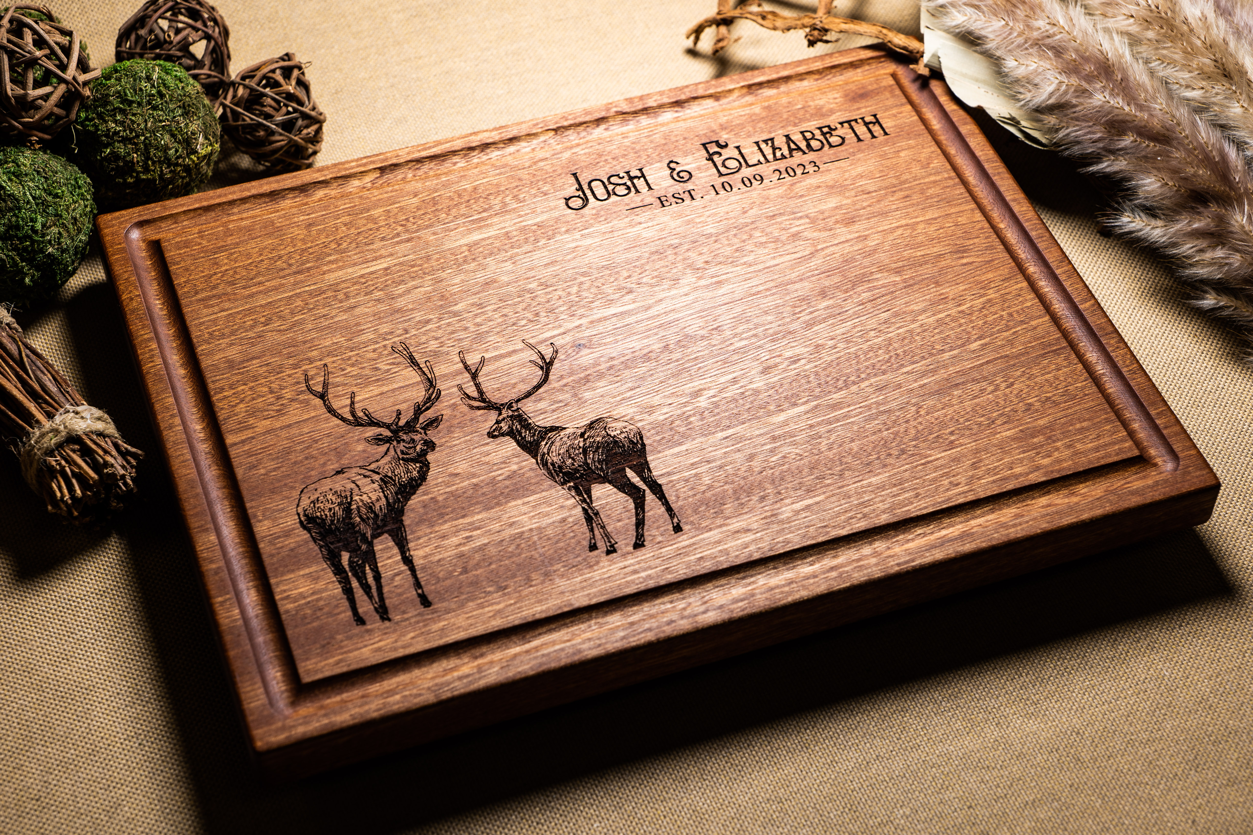 Personalized, Engraved Cutting Board with Rustic Deer Design for Wedding or Engagement Gift #40